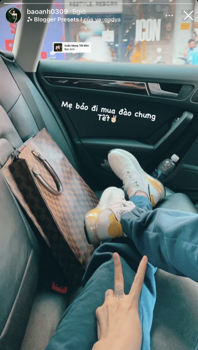 Bảo Anh nhận "lệnh" của mẹ đi sắm đào về nhà chơi Tết.