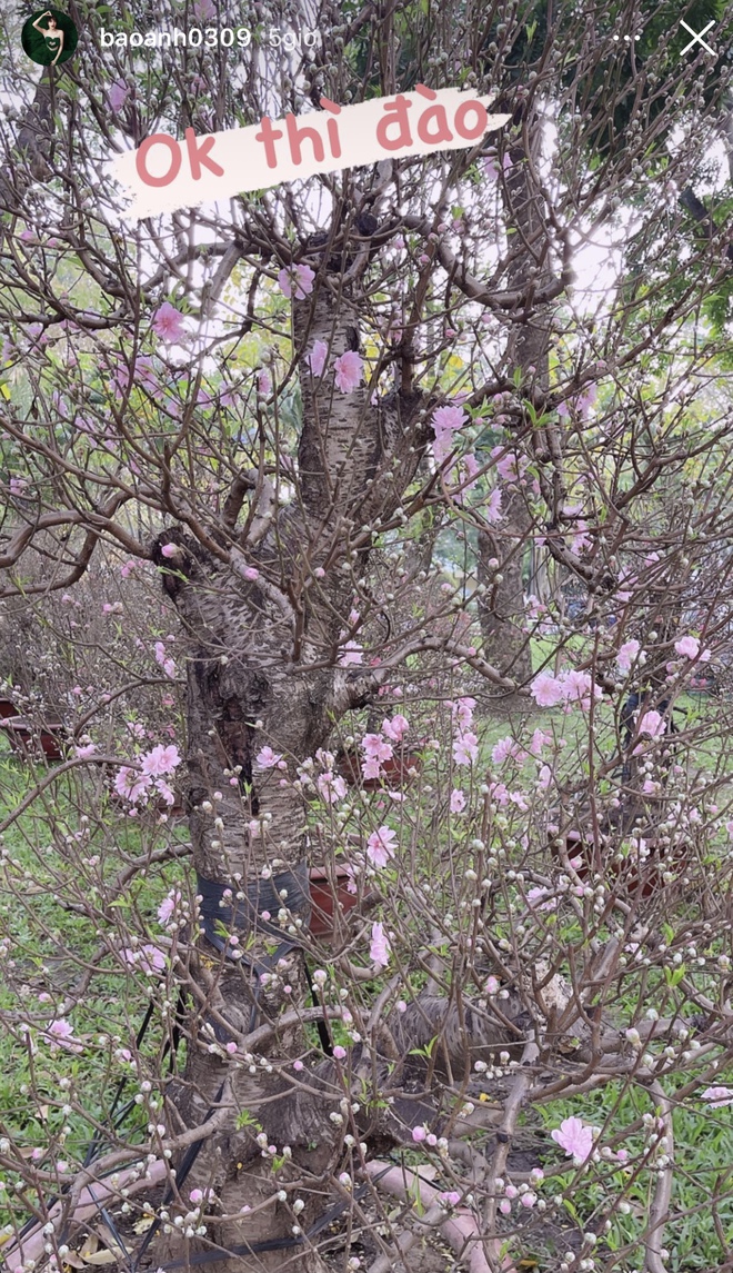 Phạm Quỳnh Anh cũng không hề kém cạnh với một cành đào đầy hoa và nụ.