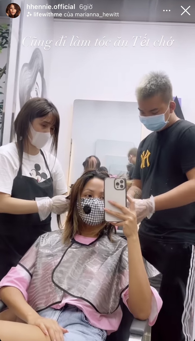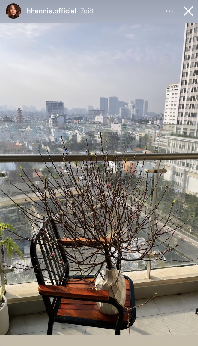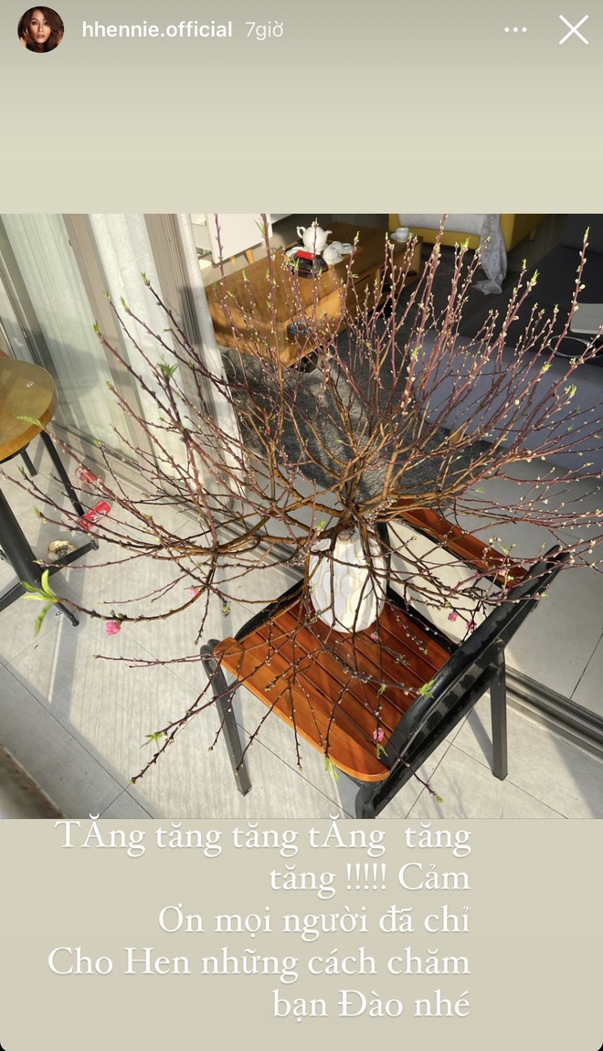 H'Hen Niê đã mua cành đào, học cách chăm cho đào vừa tươi vừa đẹp, bên cạnh đó cũng không quên sửa sang nhan sắc để đón Tết.