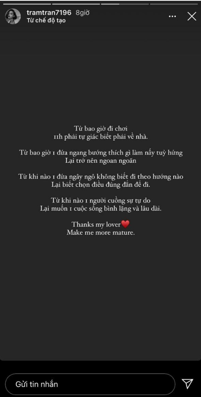 Những story ngập tràn hạnh phúc mà Trâm Trần viết trong thời gian có tin đồn hẹn hò với Huỳnh Phương