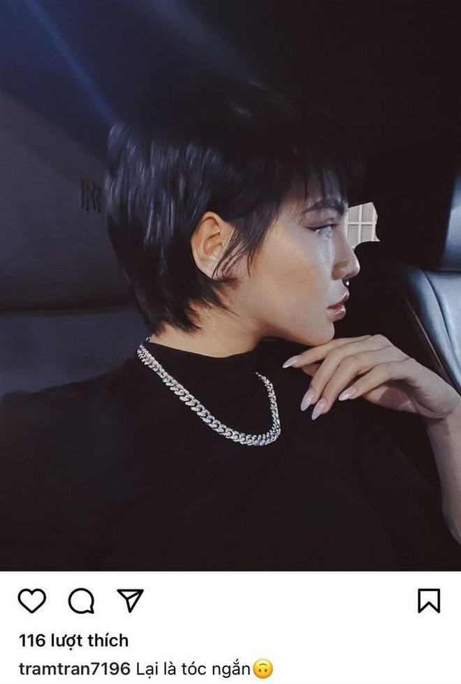 Tuy nhiên đã stalk thì stalk một thể, ngay trước Tết, Trâm Trần đã cắt bay mái tóc chấm vai của mình thành tóc tém như hình ảnh vốn có. Chia sẻ về chuyện cắt tóc, cô nàng đăng status thông báo "Lại là tóc ngắn" kèm bức hình so deep. Ngay lập tức nhiều người không khỏi liên tưởng đến truyền thuyết con gái khi thất tình thường hay cắt tóc.