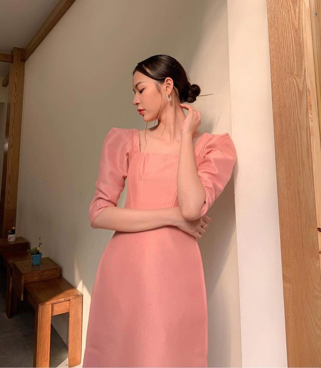 Tất nhiên, Phí Phương Anh cũng không khoe nhan sắc "thường thường" trong màn đụng hàng này đâu. Cô nàng rẽ ngôi và búi tóc thấp, điểm xuyết thêm khuyên tai để visual thêm nét kiêu kì, quý phái.