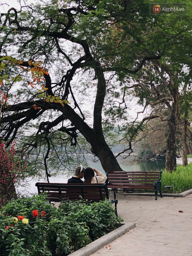 Khu vực đông đúc nhất trong trưa 16/2 là phố đi bộ hồ Gươm. Lượng người tản bộ, chụp ảnh, dạo phố tuy vậy vẫn ít hơn so với 4 ngày Tết trước đó.