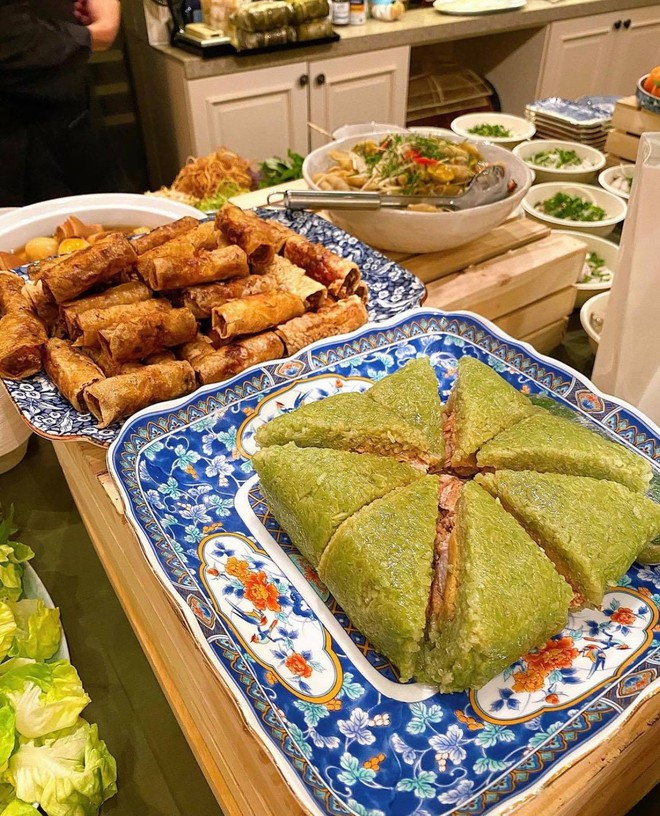 Bằng chứng là ngay tối qua (ngày 6/2), "Ngọc nữ" và gia đình cùng nhau quây quần bên bếp lửa để làm tận 3 mẻ mứt dừa. Đến sáng nay cô lại gây choáng khi khoe bàn tiệc ăn Tết thịnh soạn của giới nhà giàu. Có thể thấy, Hà Tăng "cân" hết các món ăn truyền thống của người Việt như: Thịt kho tàu, bánh chưng, nem cuốn (chả giò), chả lụa, phở, củ kiệu,... Ngoài ra, bà xã đại gia Louis Nguyễn còn chế biến luôn các món cầu kỳ như: Ốc hương xào trứng muối, chân gà ngâm,... Không chỉ nấu ăn ngon, Hà Tăng còn khéo bày biện và sắp xếp bàn ăn vô cùng tinh tế, sang trọng, ăn uống tại gia mà nhìn có khác gì ở nhà hàng.