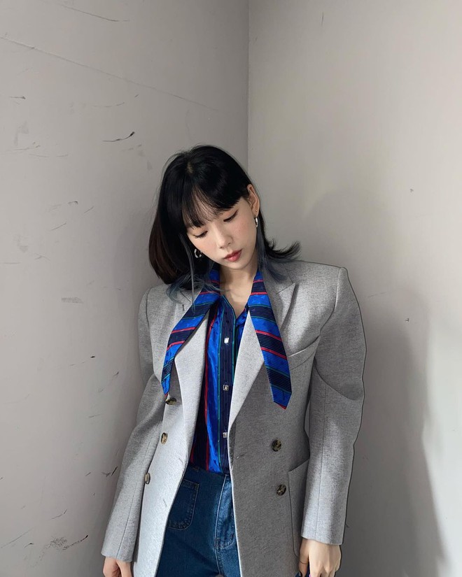 Khi đi làm thì cách ăn diện của Taeyeon cũng không cầu kỳ hơn là mấy. Tuy nhiên cô nàng sẽ chú trọng vào việc xây dựng hình ảnh thanh lịch, nhã nhặn hơn bằng một item “chuẩn mực” như blazer. Nhưng điều đó không đồng nghĩa với việc Taeyeon sẽ chấp nhận “già hóa” phong cách. Cô nàng thường chọn mix blazer cùng với áo phông họa tiết hoặc sơ mi oversized,... tạo nên diện mạo vừa thanh lịch vừa rất trẻ trung và phong cách.