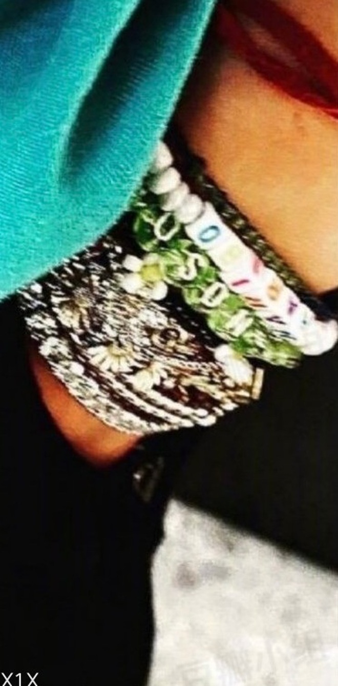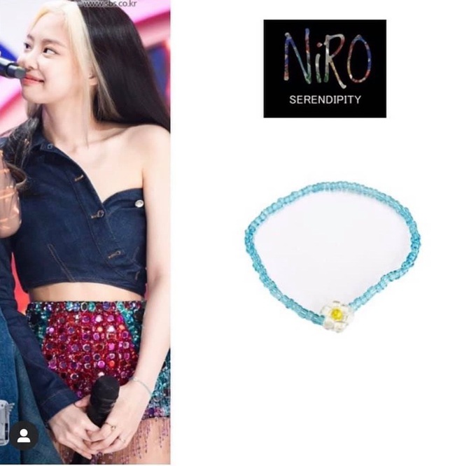 Jennie thường xuyên đeo chiếc vòng tay kết hạt hình hoa cúc. Cô sở hữu nhiều màu khác biệt của kiểu vòng này. Trùng hợp là G-Dragon cũng sở hữu mẫu vòng tương tự.