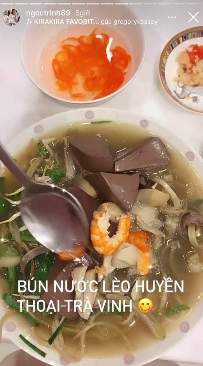 Nhưng ăn uống sang chảnh mãi rồi cũng ngán, nhìn đi nhìn lại chỉ có đồ ăn dân dã quê hương mới là ngon số 1. Mới đây, Ngọc Trinh đã làm dân tình thèm xỉu" khi đăng hình tô bún nước lèo đặc sản quê hương Trà Vinh của mình. Tất nhiên của ngon thì sao thiếu được bạn hiền, sẵn ship luôn cho cô bạn thân Diệu Nhi ăn vào khen ngon "nhức nách" cám ơn lia lịa.