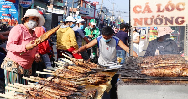 Theo anh Hoàng, một chủ cửa hàng bán cá lóc nướng cho biết, bình thường anh bán khoảng vài chục con cá, riêng ngày hôm nay thì cả 2.000 con. Nhiều tiệm bán cá lóc lớn còn đặt 2-3 điểm bán cách nhau vài chục mét để phục vụ bà con, chỉ trên một đoạn đường ngắn chưa tới 1km đã có khoảng 20 hộ gia đình bán cá lóc nướng.