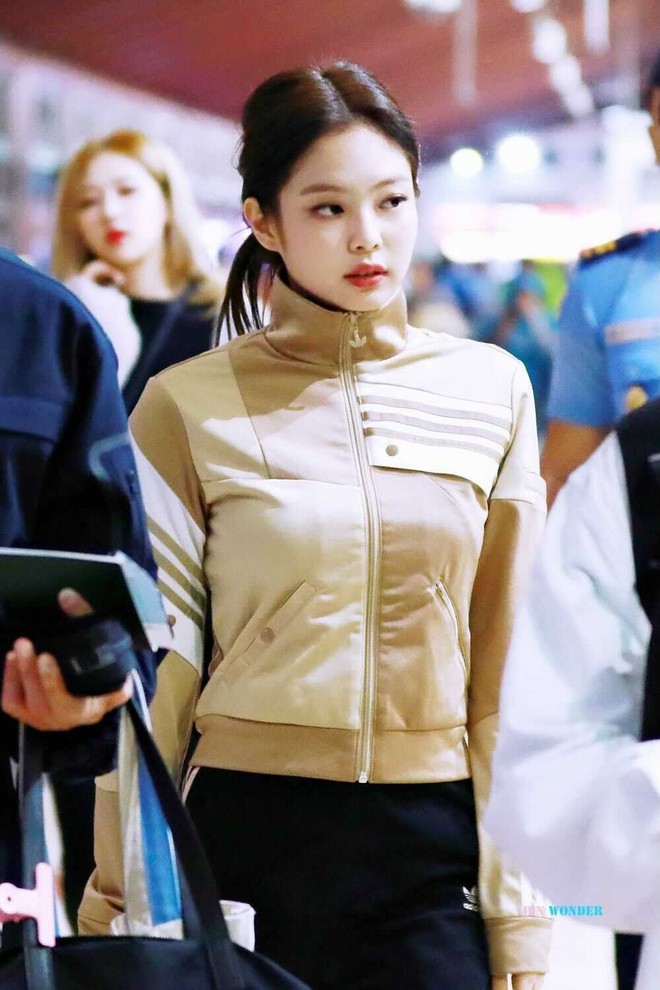 Tiếp theo vẫn là một màn mượn đồ của nhau khiến các Blink thích thú. Jennie và Rosé lại là "cặp bài trùng" khi cùng "quẩy" áo khoác màu nâu be của adidas đó nha. Trong khi đại sứ Chanel kéo khoá áo kín cổ để giữ ấm thì nàng main vocal tinh tế mix thêm khăn choàng cổ cho xinh xẻo hơn.