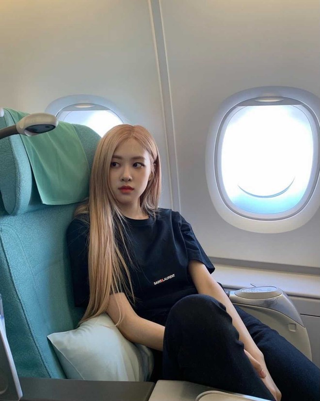 Chiếc áo phông Saint Laurent không chỉ giúp Jennie toả sáng ở sân bay mà còn giúp Rosé ghi điểm khi khoe dáng trên máy bay nữa. Dù cùng diện chiếc áo phông basic màu đen như thế nhưng Jennie và Rosé đều có outfit cá tính của riêng mình. Công bằng mà nói thì chẳng ai kém cạnh ai đâu.