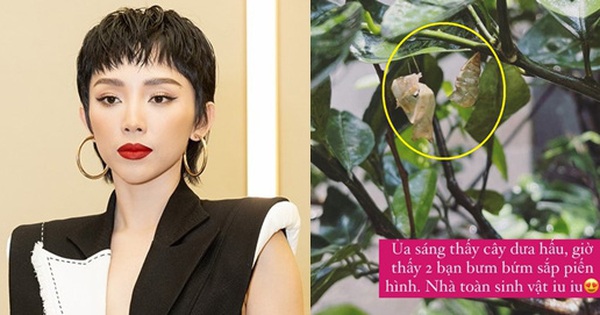 Cụ thể, Tóc Tiên háo hức khoe về vườn cây trong nhà mình: "Ủa sáng thấy cây dưa hấu, giờ thấy 2 bạn bươm bướm sắp biến hình. Nhà toàn sinh vật yêu yêu".