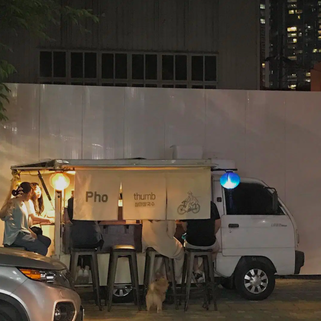 Xe tải bán phở đó tên là Pho Thumb, chuyên bán vào tối - nửa đêm. Xe đẩy này được đánh giá rất cao, nhiều người Hàn nhận xét hương vị phở gần giống với phở ở Việt Nam nên dù chỉ là xe tải nhỏ vẫn thu hút người sành ăn tới thưởng thức.