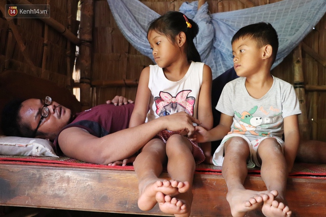 Đưa tay quệt nước mắt, Diễm (11 tuổi) loay hoay chuẩn bị bữa cơm chiều cho cả nhà trong lúc mẹ đi bán hàng rong. Cách đó vài bước chân, anh Thương (cha của Diễm) cố nhấc người ngồi dậy, vẻ mặt đầy đau đớn.