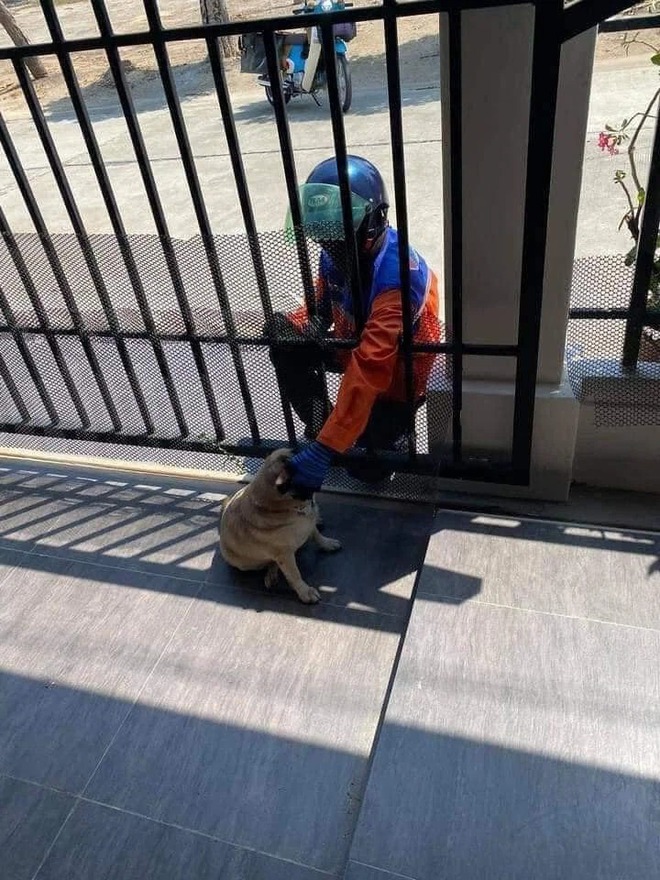 Nguyên văn than thở của cô gái: "Chàng shipper này mỗi lần đi giao hàng qua đều lại vuốt ve bé cún, họ rất thân thiết nhau.