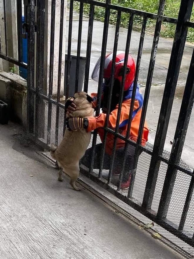 Kèm theo chia sẻ là hình ảnh chú chó và chàng shipper thân thiết với nhau. Anh giao hàng thò tay qua lớp cửa sắt để cưng nựng, vuốt ve chú chó. Còn "đại boss" thì lim dim đôi mắt, cái lưỡi lè ra trông vô cùng mãn nguyện.