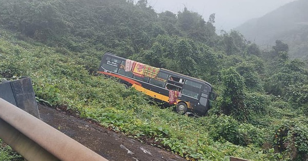 Chiếc xe khách mất lái và lao xuống vực làm hàng chục người trên xe hoảng loạn.