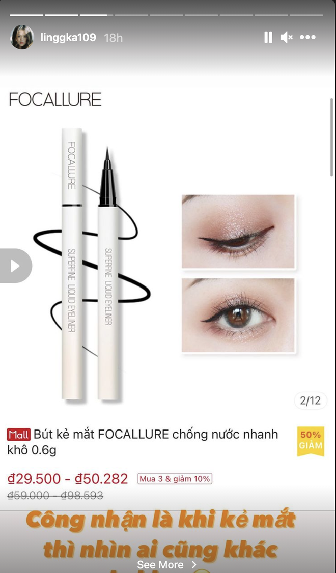 Linh Ka cũng giới thiệu luôn kẻ mắt nước bám lâu, chống nước tốt là Focallure Superfine Liquid Eyeliner. Giống với dòng son giá siêu "hạt dẻ" phía trên, kẻ mắt nước này cũng chỉ có vài chục ngàn thôi đó! Nàng nào muốn tậu mỹ phẩm makeup giá bình dân, chất lượng ổn thì có thể nghía nào!