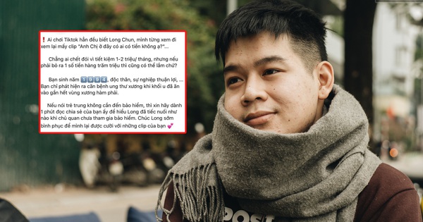 Hot TikToker Long Chun, tên thật là Trần Hoàng Long, mới đây đã bày tỏ bức xúc khi hình ảnh của anh bị người lạ sử dụng để quảng cáo bán... bảo hiểm. Chủ tài khoản FB tên T.Đ.V., tự giới thiệu làm việc tại một hãng bảo hiểm nổi tiếng, đã lợi dụng hình ảnh và bài chia sẻ về căn bệnh u men xương hàm của Long Chun như một ví dụ điển hình để thuyết phục khách hàng/người dùng MXH mua bảo hiểm.