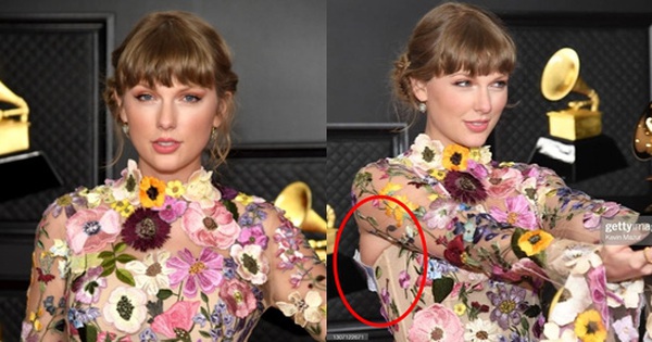 Thế nhưng, việc Taylor Swift nhận giải thưởng danh giá này hay việc cô nàng hóa "nữ thần hoa" vẫn chưa phải là lý do khiến cô trở thành điểm sáng của sự kiện này đâu các bạn ạ, mà là vì khoảnh khắc cô hí hửng chụp cùng kèn vàng Grammy vô tình để lộ chiếc áo... rách nách.