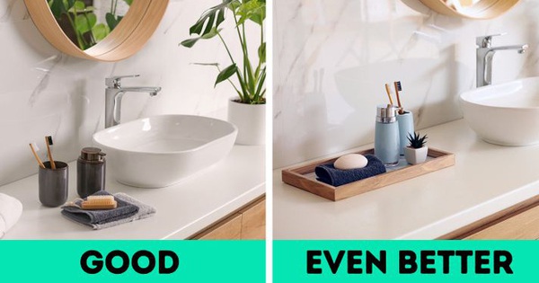 Một chiếc khay xinh xắn sẽ là vật trang trí khiến nhà tắm của bạn sang gấp đôi bình thường. Nó cũng là một chỗ tiện dụng để cất giữ những thứ dễ bị thất lạc, chẳng hạn như đồ mỹ phẩm trong các gói nhỏ, phụ kiện tóc...