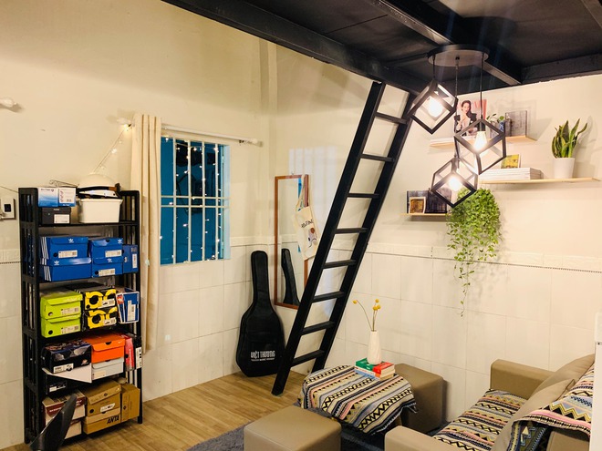 Anh Duy mất 3 ngày lên ý tưởng và 7 ngày thực hiện để có được căn phòng trọ mơ ước. Sau cải tạo, khu vực ghế sofa được xem là chill nhất. Đây cũng là góc yêu thích của anh bởi có thể tiếp khách, đọc sách, tập đàn và kể cả làm việc. Căn phòng nhận được khá nhiều lời khen từ các anh chị trong khu trọ, mọi người đều mê mẩn khi đi vào tham quan.