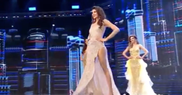 Theo đó, thí sinh này bị chính chiếc váy có phần xẻ tà khá sâu cùng góc quay hiểm hóc từ dưới lên của camera... phản chủ. Nhưng có lẽ vì quá chú tâm về phía trước mà cô không hay biết sự cố đang xảy ra. Dù vậy, nhiều netizen tin rằng cô nàng đã có chuẩn bị sẵn đồ bảo hộ khi diện trang phục cắt xẻ như thế này nên chuyện lộ hàng là điều khó có thể xảy ra.