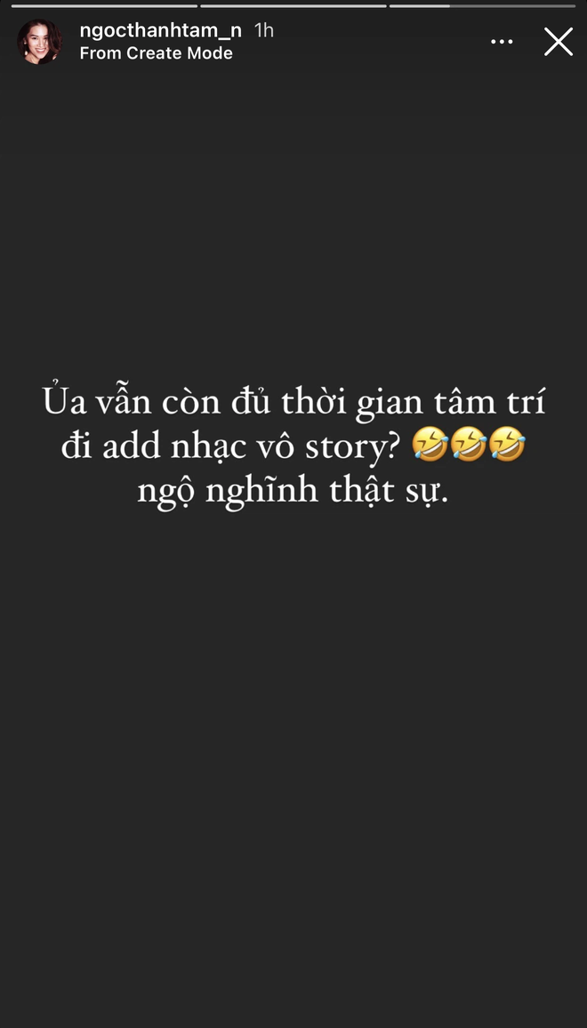 Trong lúc mọi người vẫn chưa hiểu chuyện gì thì Ngọc Thanh Tâm xuất hiện. Cô nàng đăng lại bức ảnh mình cùng Primmy ôm nhau thắm thiết cùng một câu nói ở thì quá khứ, đại loại là "Chúng ta đã từng vui vẻ như thế đấy". Căng thẳng hơn, chỉ ít phút sau, ái nữ đại gia thủy sản tiếp tục bồi thêm: "Ủa vẫn còn đủ thời gian tâm trí đi add nhạc vô story? Ngộ nghĩnh thật sự".