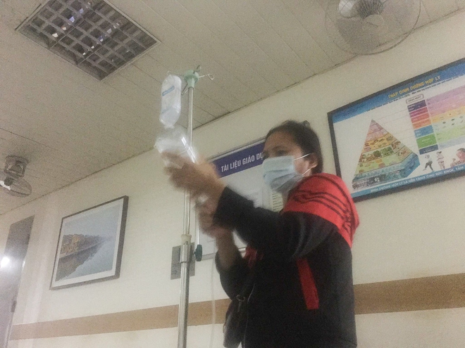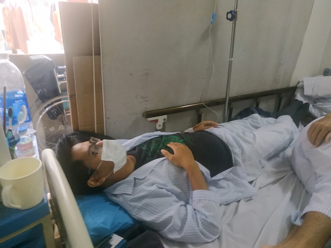 Hường (bên trong) nằm chung giường bệnh cùng một bệnh nhân nữa