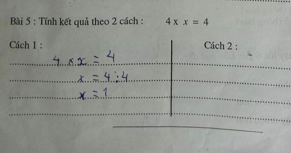 Như mới đây, một bài toán lớp 2 yêu cầu như sau: "Tính kết quả theo 2 cách với phép toán 4 x x = 4", trong đó nghiệm là x.
