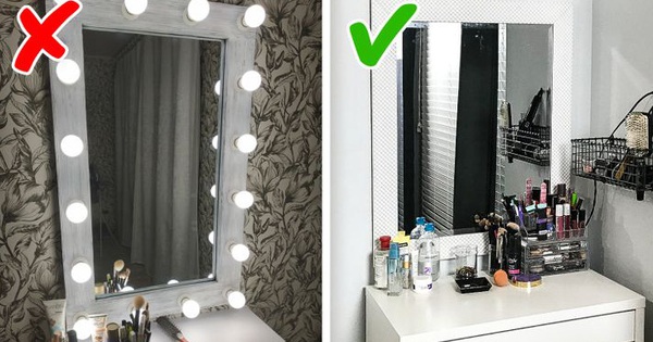 Một chiếc gương được bao quanh bởi những bóng đèn nhỏ đã trở thành niềm mơ ước của nhiều tín đồ thời trang trên Instagram. Mọi phụ nữ đều muốn cảm thấy mình là một ngôi sao, nhưng không may là yếu tố nội thất này có thể khiến chúng ta lạc hậu. Có thể thay đèn gương Hollywood và bàn trang điểm bằng thiết kế trung tính và ánh sáng dịu hơn.