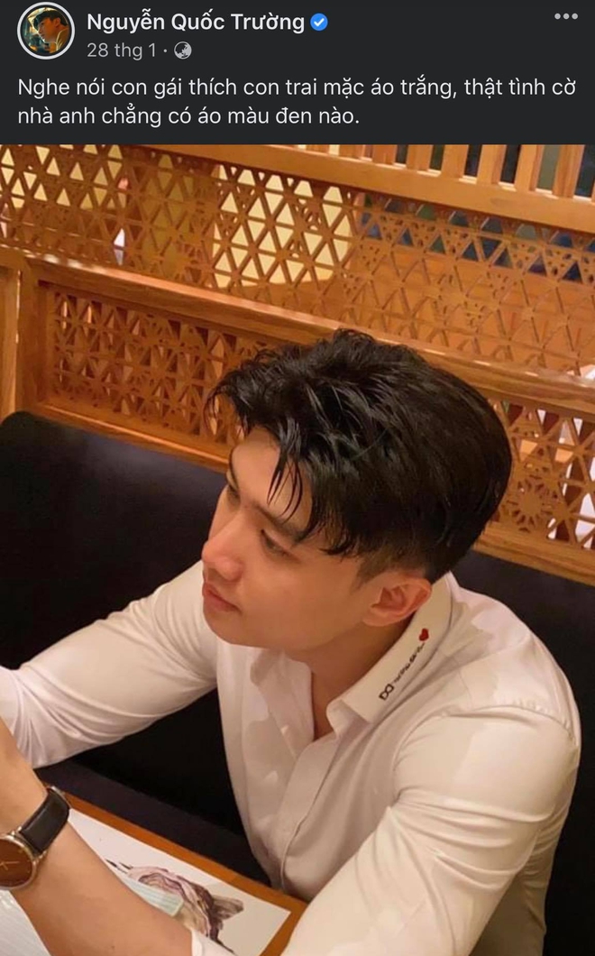 Thế nhưng ai theo dõi Quốc Trường lâu nay đều biết, trai đẹp này có một đam mê với việc đăng ảnh bản thân để... thả thính.