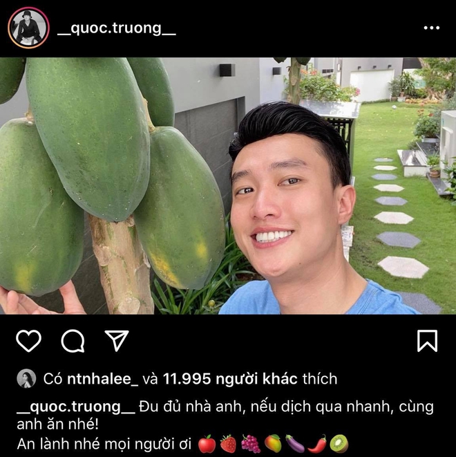 Mỗi bức ảnh anh chàng đăng lên 90% sẽ đi kèm một dòng caption, đọc vô là thấy "thính" bay tung tóe. Có quote Quốc Trường đi "mượn" nhưng cũng không ít status của trai đẹp là tự nghĩ. Và phải thừa nhận rằng "thính" của Quốc Trường, mẻ nào mẻ nấy đều là hàng chất lượng cao.