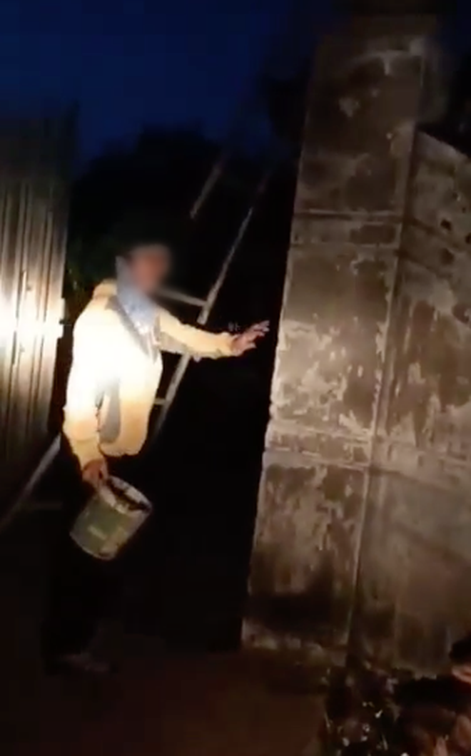 Khi thấy con khóc, bà G. dỗ dành; "Nín đi con, nín đi con". Quay ra đường, người phụ nữ vừa thực hiện hành động đổ phân vẫn đứng đó tiếp tục chửi bới.