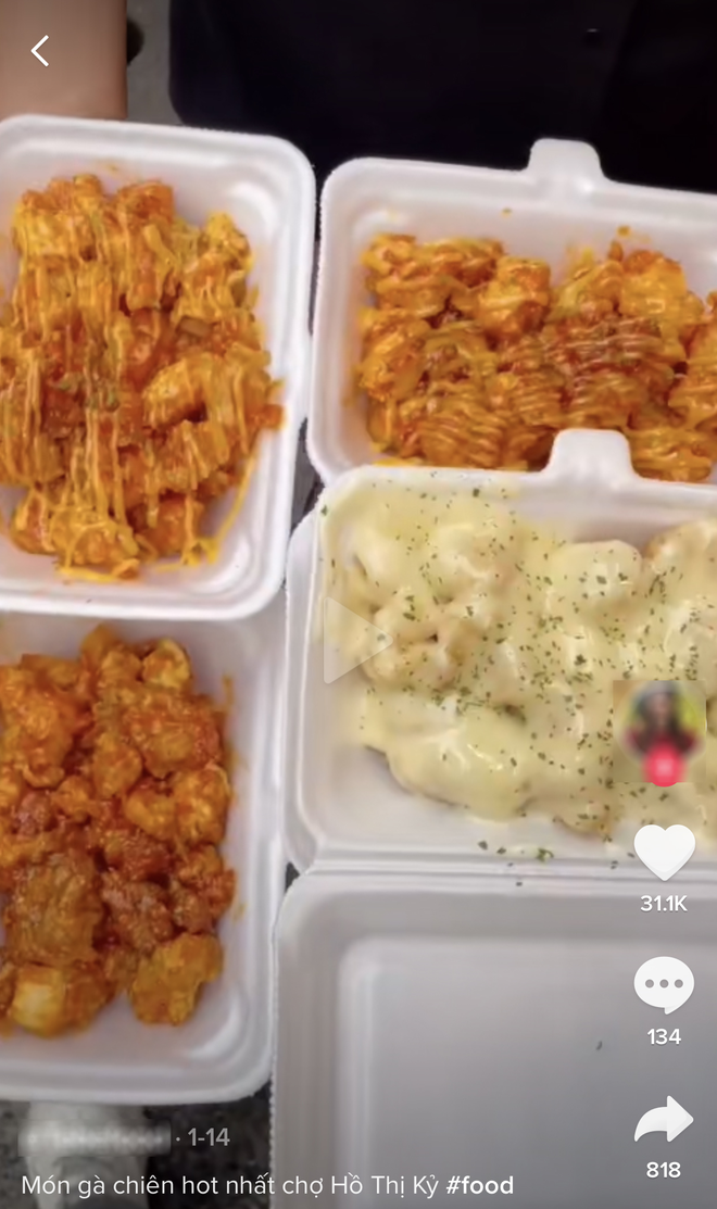 Dù xuất hiện từ khá lâu nhưng chỉ vài tháng trở lại đây, địa điểm này mới "gây bão" vì xuất hiện dày đặc trên các bài review của hội food blogger đình đám. Đặc biệt trên TikTok, bất kỳ đoạn clip về "food tour chợ Hồ Thị Kỷ" nào cũng thấy có mặt hàng gà viên này.
