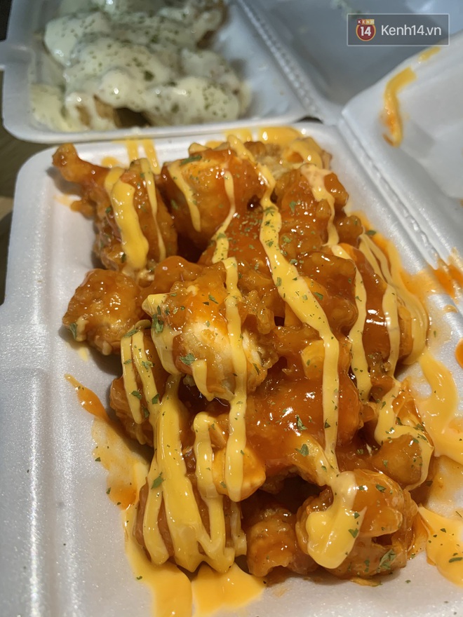 Tiệm bán 5 món gà rán với các loại sốt khác nhau, trong đó best-seller chính là sốt cay và sốt kem. Mỗi hộp có giá từ 40k - 45k tuỳ loại. Theo đánh giá chủ quan từ người viết, dù hộp gà đầy ứ ự nhưng mức giá này chưa phù hợp với chất lượng của món ăn. Còn vì sao chưa phù hợp thì mời bạn đọc đến cuối bài viết!