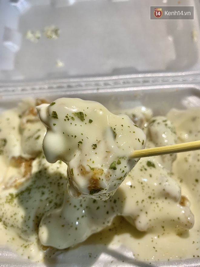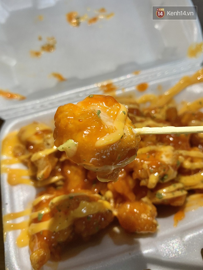 Theo cảm nhận "hổng hề giả trân" từ người viết, gà được tẩm bột khá nhiều, ăn cảm giác bị bở chứ không giòn. Miếng thịt gà bên trong khá khô. Lớp nước sốt cay nhưng ăn lại… chẳng thấy cay, trái lại còn có vị ngọt và "khen khét" mùi dầu chiên. Nước sốt kem vị khá giống mayonnaise, vì quá béo nên ăn vào tầm 2 miếng là thấy ngán.