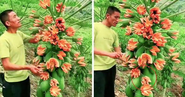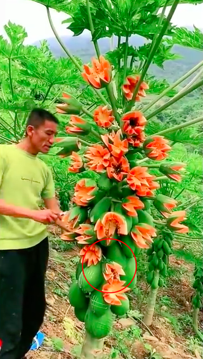 Tới công đoạn cắt thử trái đu đủ ra, anh nông dân đã để lộ sơ hở. Dân tình bóc mẽ ngay những điểm bất thường. Những trái hình bông hoa thực chất chỉ là nửa trái đu đủ được cắt tỉa, sau đó “cắm” vào các đầu cành, ngọn lá của cây. Khi anh nông dân cắt thử một trái đu đủ, lực mạnh còn làm cho những trái được gắn vào bị long ra.