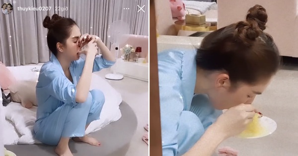 Bắt gặp Ngọc Trinh khổ sở bịt mũi uống bát nước, lộ tẩy lý do vì sao dạo này hay ăn sầu riêng lúc nửa đêm
