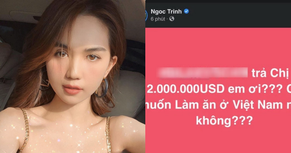 Nguyên văn status của Ngọc Trinh như sau: "*** (tên công ty - PV) trả chị 2.000.000 USD em ơi? Có muốn làm ăn ở Việt Nam nữa không?".