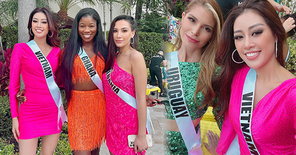 Tuy vậy, chiếc váy hầu như không ảnh hưởng gì đến Khánh Vân khi cô vẫn vui vẻ và thoải mái quay story với các thí sinh khác tại Miss Universe.
