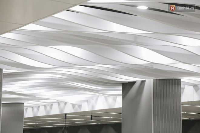 Những con sóng lượn nhè nhẹ trên trần nhà ga giúp khách đi tàu hình dung được sự tươi mát của dòng sông Sài Gòn