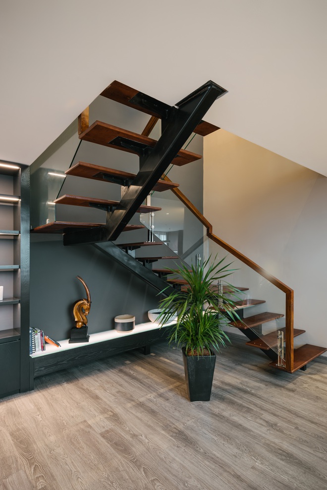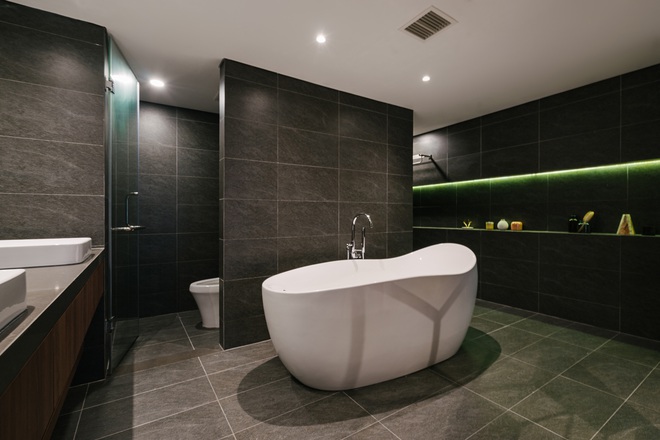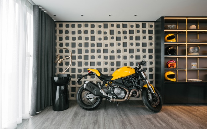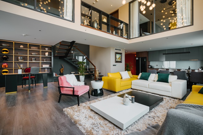 Căn duplex này có cách phối hợp màu sắc thú vị và hệ thống đèn chiếu sáng hiện đại.