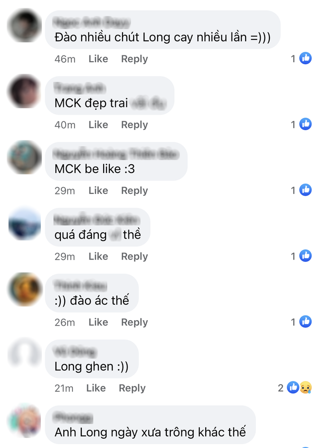 "Anh Long trong ảnh trông khác thế nhỉ?", "Đào nữa lên đi mọi người, cho ông Long tức thêm mấy hồi", "Hoàng Long đã xem", "Ai ác với chị tôi vậy?", "Mọi người đào nữa đi, tui thích lắm"..., những bình luận rôm rả kiểu này được spam liên tục.