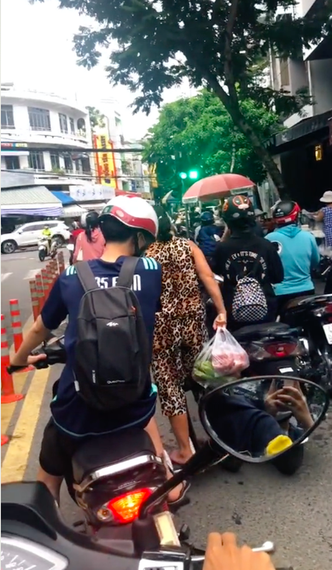 Trong video, có thể thấy cô điều khiển chiếc xe vô cùng điêu luyện, một tay xách mớ đồ ăn vừa mua được ở chợ, tay còn lại thì cầm tiền và điện thoại. Khi tới đoạn ngã tư đông người, dân mạng còn "choáng" hơn khi thấy cảnh người này điều khiển xe lách qua đám đông phía trước một cách tỉnh bơ.