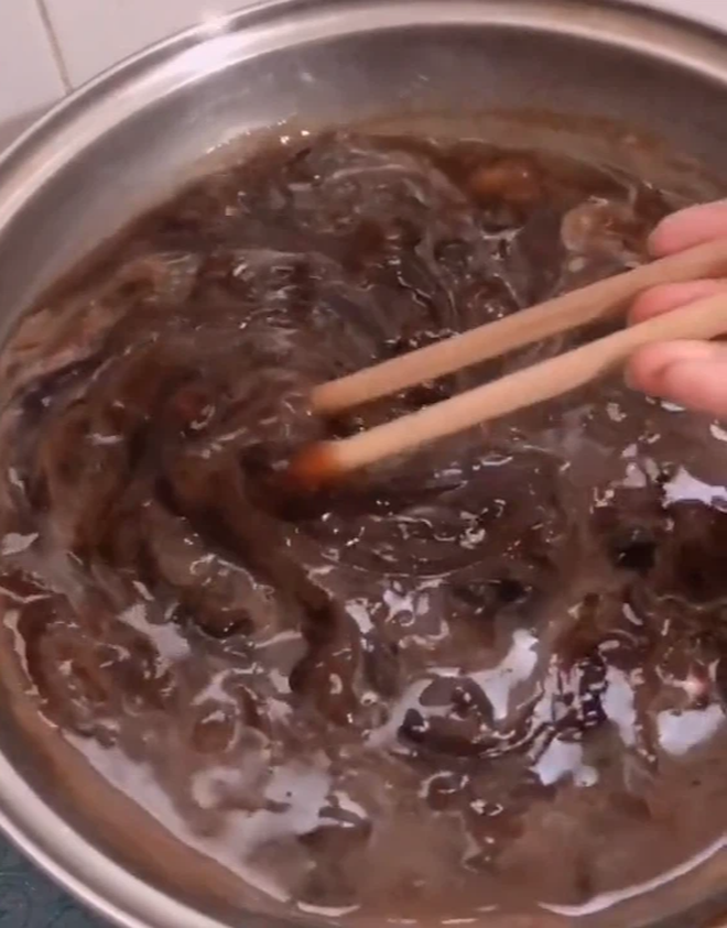 Công đoạn nấu chín trân châu tưởng như đơn giản mà hóa ra lại khiến chính chủ khóc thét. Rõ là ban đầu bỏ vào nồi toàn những hạt xinh xinh, ấy thế mà lại nấu ra nguyên một nồi nhão nhoét. Pha biến hình này có lẽ đã khiến cô gái trong clip dở khóc dở cười và vô cùng tiếc rẻ. Trân châu thế này thì đúng là "vô phương cứu chữa".