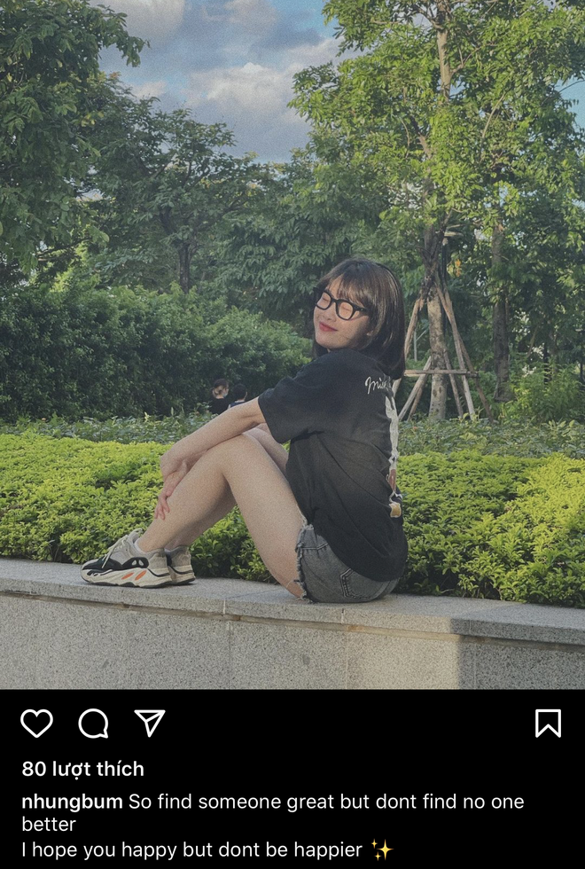 Không thua kém chị em, Nhung Bum - bồ cũ Văn Toàn đăng status đầy ẩn ý, là lyric bài Happier (Olivia Rodrigo): "So find someone great but don't find no one better. I hope you're happy, but don't be happier" (Tạm dịch: Cho nên hãy tìm người nào đó tuyệt vời nhưng đừng tìm ai đó tốt hơn. Em hy vọng anh hạnh phúc nhưng không được hạnh phúc hơn).