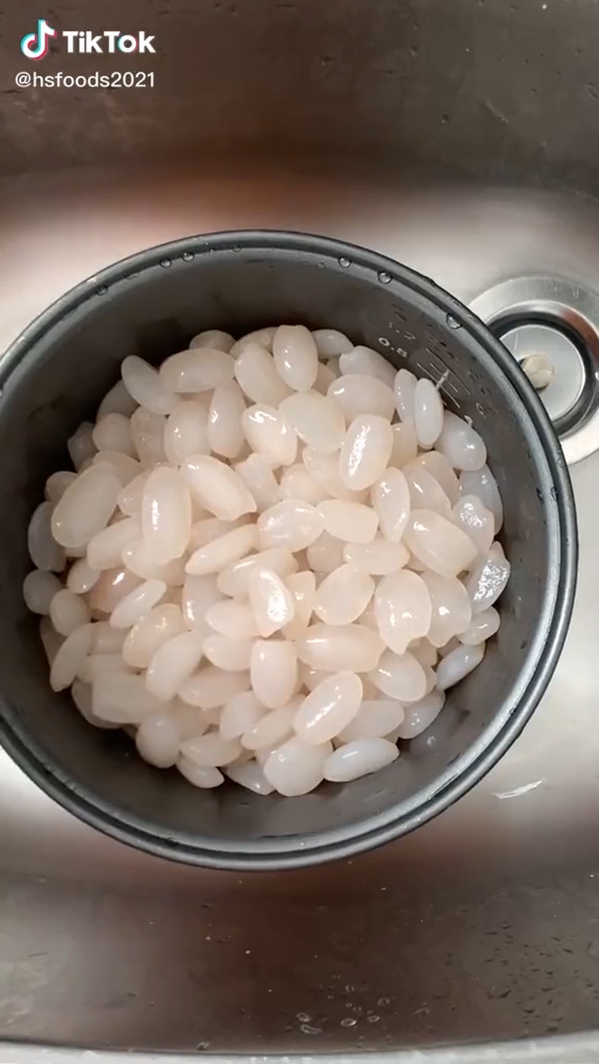 Nhìn sơ qua, nếu ai xem trên điện thoại hẳn là sẽ có người mất đến 1 - 2 giây nhầm lẫn. Bởi những thứ được đựng trong chiếc nồi trên khá giống hình dáng hạt gạo, lại cũng có màu trắng y xì đúc, chỉ khác là kích thước phóng đại lên rất nhiều lần.