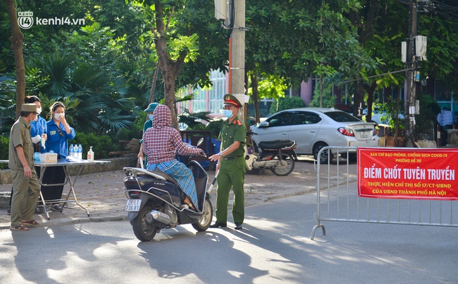 Ảnh: Lập chốt tại các làng ở quận Nam Từ Liêm, người dân ra ngoài không cần thiết sẽ bị xử phạt