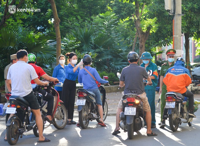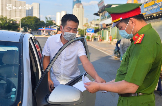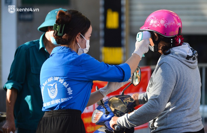 Người dân đi qua sẽ được đo thân nhiệt, bên cạnh đó, còn phải xuất trình được giấy tờ chứng minh ra ngoài làm việc trong khuôn khổ cho phép của Chỉ thị 17