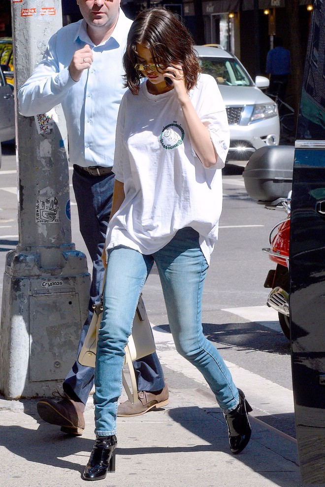 Không riêng gì khi sánh đôi với bạn trai cũ mà những khi sải bước một mình Selena vẫn rất cuốn hút. Phong cách của cô nàng cũng chỉ quẩn quanh những item cơ bản như váy hoa, váy quấn, jeans, áo phông, cardigan, sneaker hay sandal nhưng vẫn nhận được nhiều lời khen nhờ khả năng mix&match ổn áp, tất nhiên là ngoại hình xinh đẹp cũng góp công không nhỏ.